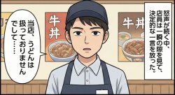 「うどんがヌルかったぞ!」牛丼屋で衝撃クレーマー客 店員のまさかの一言で退散【実録マンガ】