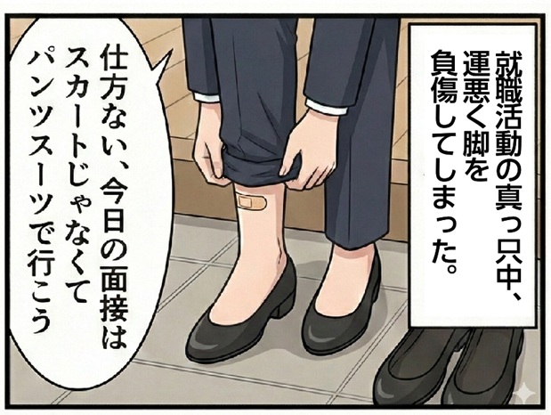 【衝撃エピソードをマンガ化】今回は埼玉県の30代女性が新卒のときに経験した最悪の面接エピソードをご紹介。スカートに異様に執着する面接官とのやり取りとは――。