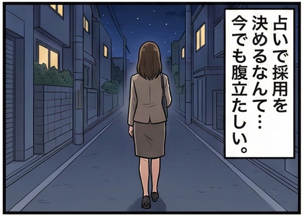 もちろん、占いを選考結果に反映するのは採用のルール的に絶対にNGだ。まともな会社ではなかったのだろう。※マンガの制作にはAI(Gemini)を使用しています。