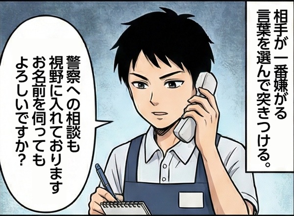 【このエピソードの詳細はこちら】意味不明な主張をするクレーマーに「誹謗中傷は警察への相談も視野に入れております」と言い返した結果