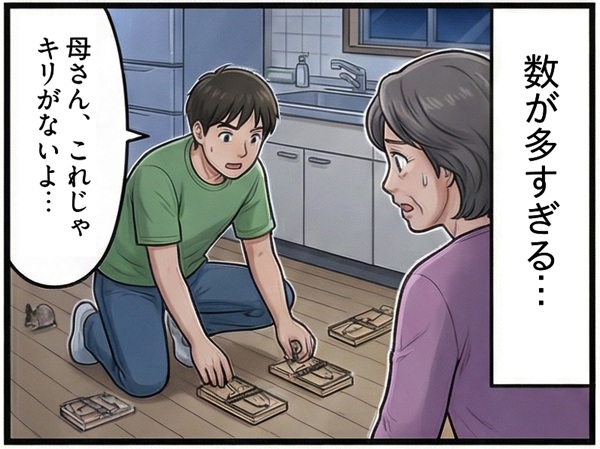 ネズミ問題は落ち着いたものの、ご近所さんには30年来悩まされているという女性。穏やかな日を迎えられることはあるのか。※マンガの制作にはAI(Gemini)を使用しています。