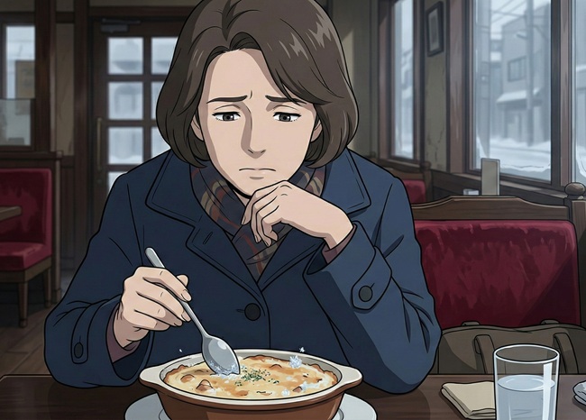 寒い日のこと。女性は子どもの学校の参観前に体を温めようと、ある喫茶店でドリアを注文した。
