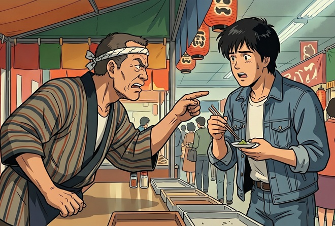 「試食の一つ目ならまだ相手の言い分は理解できるが、2つ目までスルーしておいてからの文句は言いがかり、押し売りに等しい」