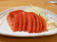 四国酒場は、四国4県の海・山の幸を使ったご当地料理を中心とする居酒屋。藁焼きカツオタタキは高知県の名物で、藁の炎でカツオの表面を焼いたもの。高温で短時間に焼き上げることで特有の生臭さを消し、旨味を引き立てている。