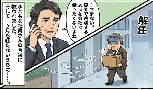 女性に言ったこと一言が原因となったのかは不明だが、件の副社長は解任されていたという。ほかにも色々と問題があった人物なのだろう。(※マンガの制作にはAIを使用しています)